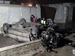 В Парканах иномарка врезалась в забор и опрокинулась на крышу