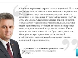 Президент Вадим Красносельский о дальнейшем развитии Приднестровья