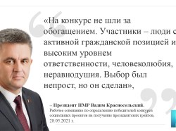 Вадим Красносельский о победителях конкурса соцпроектов на получение грантов Президента ПМР
