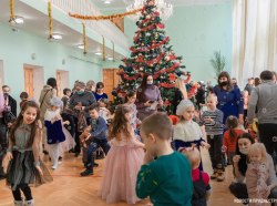 Горожан поздравляли с Новым годом, детям дарили сладости
