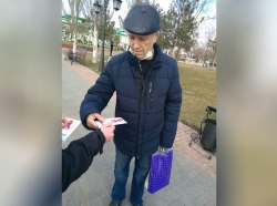Молодые люди раздавали прохожим памятки о мерах профилактики онкозаболеваний