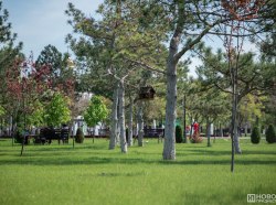 В сквере городского Дворца культуры празднично накрыли дюжину столов