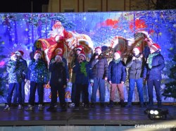 Дед Мороз приехал на пожарной машине, по площади прошли сказочные герои, на сцене выступили творческие коллективы