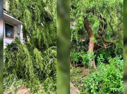 Упавшая в центре столицы ива заблокировала подъезд девятиэтажки