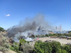 На большой площади горит сухая трава и мусор