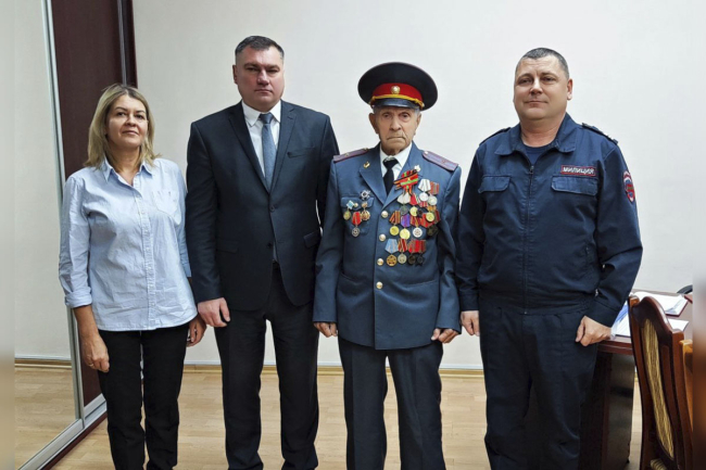 Сегодня рыбничанин принимал поздравления в кабинете начальника рыбницкого ОВД. С днём рождения и Днём милиции ветерана Великой Отечественной войны поздравил глава города Виктор Тягай. Он пожелал фронтовику здоровья и долгих лет жизни.
