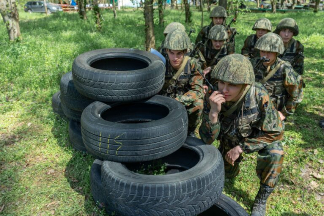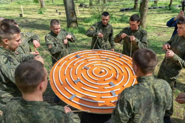 Молодые люди решали тактические задачи, преодолевали полосу препятствий, занимались на стрелковом тренажёре, управляли дронами