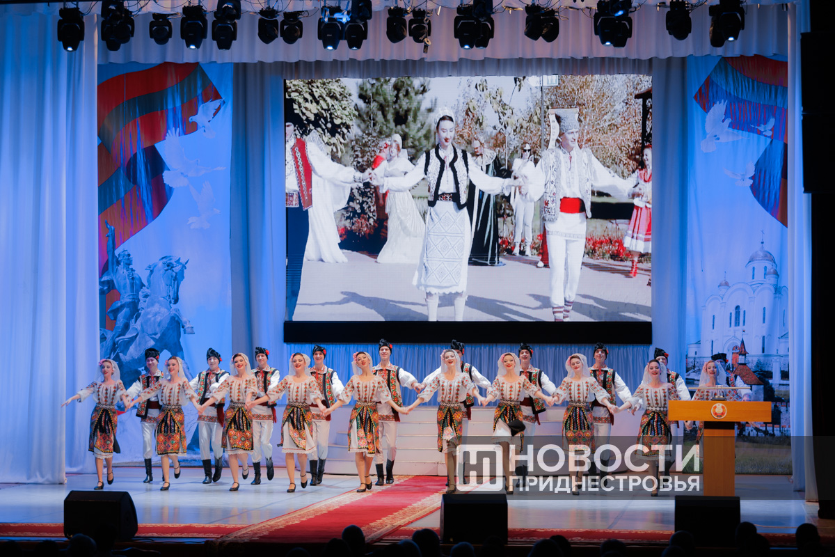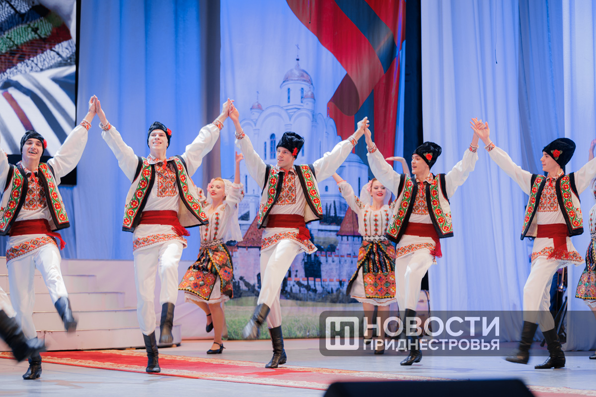 С заслуженными наградами победителей поздравляли и ведущие творческие коллективы республики. Хореографическую композицию «Праздничная» подарил Приднестровский государственный ансамбль танца и народной музыки «Виорика».