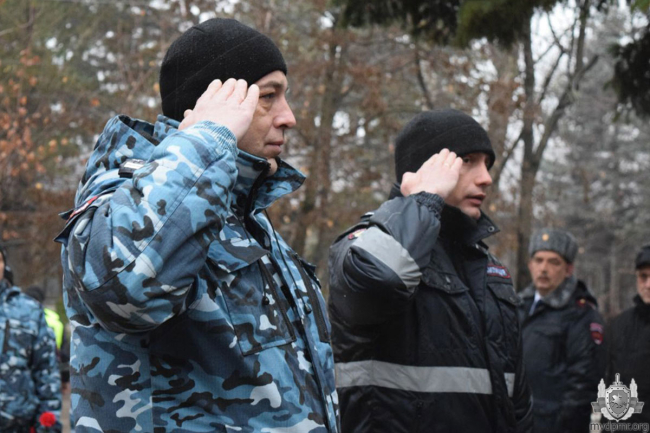 Милиционеры возложили цветы к памятнику коллегам, погибшим при исполнении служебного долга