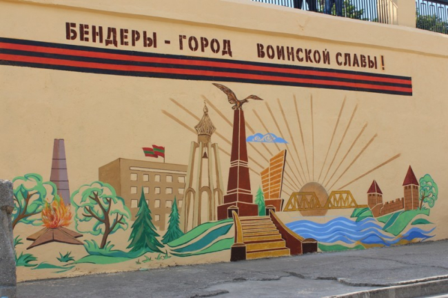 Бендеры, 8 мая. /Новости Приднестровья/. Благодаря тандему профессионалов и начинающих художников бендерскую набережную украсило монументальное графическое панно «Бендеры – город воинской славы».