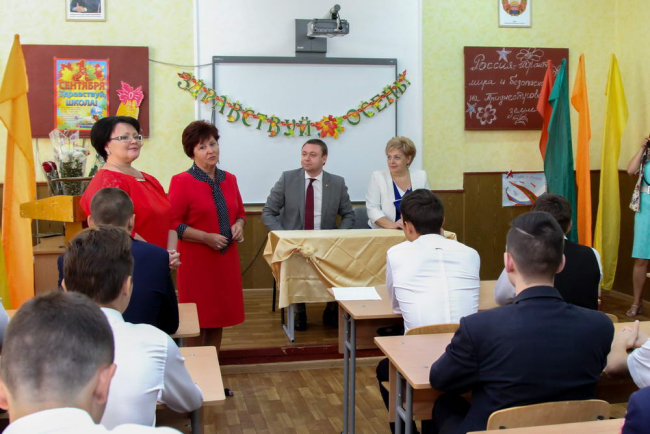 После торжественного завершения линейки все классы расходятся по кабинетам, чтобы провести первый урок. Классный час под названием «Россия - гарант мира и безопасности на Приднестровской земле» прошёл для выпускников. Одиннадцатиклассники смогли воспользоваться уникальной возможностью — обсудить актуальные проблемы и волнующие вопросы с Председателем Правительства ПМР.