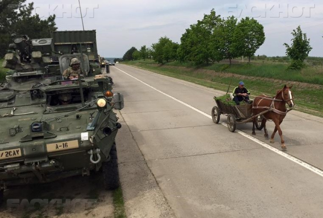 04 Май., 2016, 11:57БТР-ы и бронированные автомобили второго кавалерийского полка армии США продолжают движение по дорогам Молдовы, несмотря на протесты значительного количества граждан.