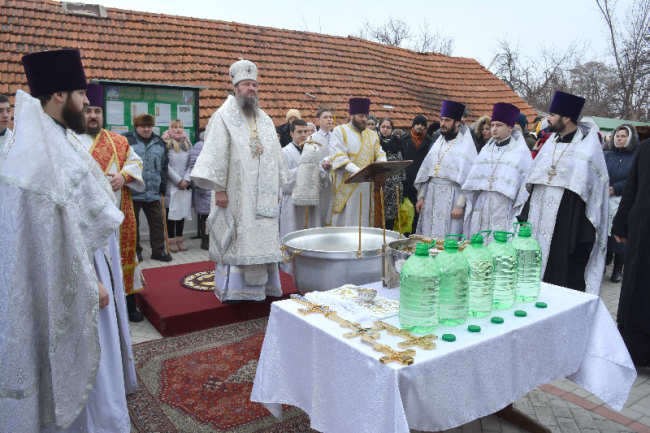 По окончании божественной литургии Архиепископ Савва совершил чин великого освящения воды и благословил верующих на заполнение принесённых ими сосудов освящённой водой, после чего окропил собравшихся горожан святой водой.