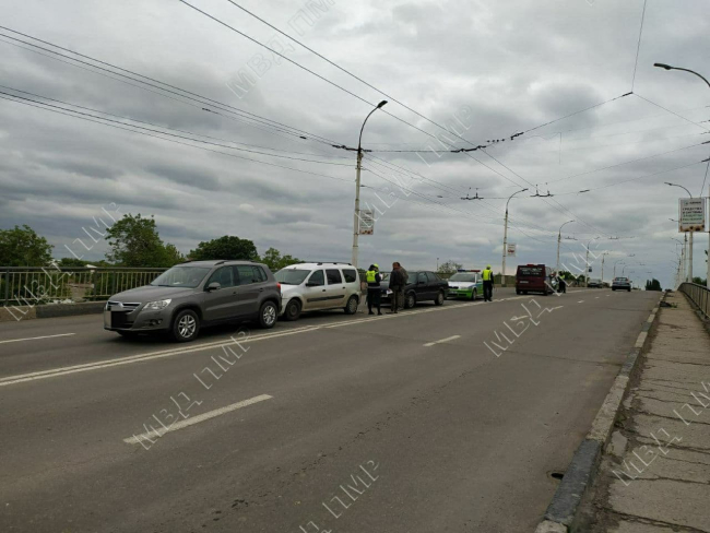 Тирасполь, 1 июня. /Новости Приднестровья/. Авария с участием трёх машин произошла сегодня в начале шестого вечера на тираспольском мосту по улице Шевченко, передаёт пресс-центр МВД.