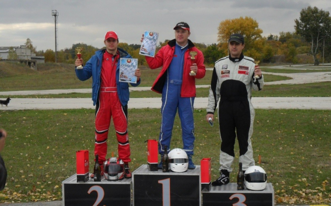 Чемпионы заездов подняли над своими головами кубки Федерации автомобильного спорта.