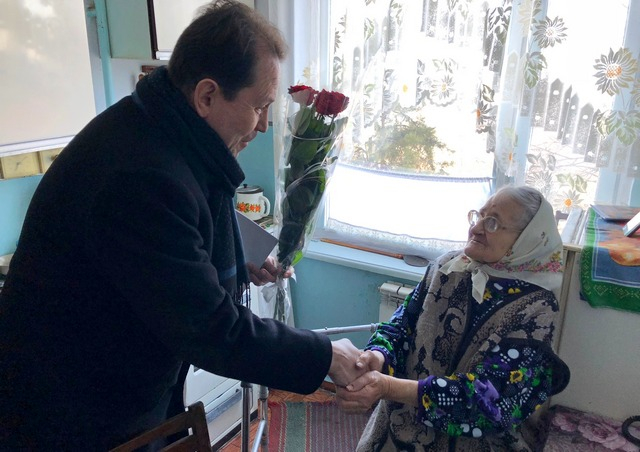 Навестить юбиляра пришли представители ветеранской организации и депутаты горсовета