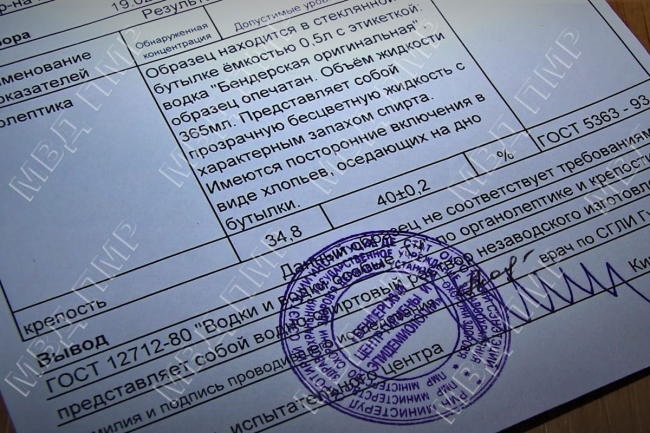 Там готовили, разливали и продавали суррогатный алкоголь. Экспертиза показала, что напиток не соответствует требованиям ГОСТ 12712-80 «Водки и водки особые».