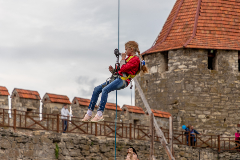 Проходили различные мероприятия и в цитадели крепости. Любители экстрима смогли даже полетать. Зиплайн – экстремальный спуск, во время которого человек несётся по стальному канату под воздействием гравитации, набирая большую скорость. По словам организаторов, от желающих прокатиться не было отбоя. Люди становились в очередь за полётом.
