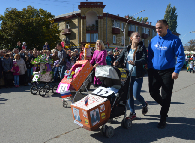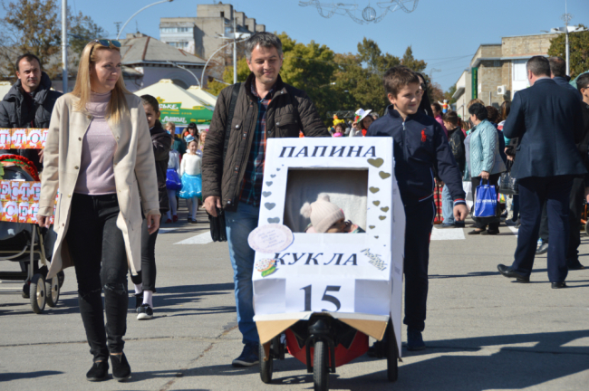 Одним из самых ярких моментов сегодняшнего дня стало костюмированное шествие-парад. Открыл его самый настоящий праздничный паровоз с веселыми клоунами. Смелые и креативные родители сумели превратить детские коляски своих малышей в настоящие произведения искусства.