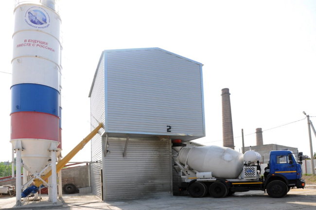 Напомним, бетонный завод был построен в рамках второй очереди социальных проектов, реализуемых АНО «Евразийская интеграция» за счёт средств российской гуманитарной помощи. Производство было возведено в максимально короткие сроки — один месяц, а торжественное открытие состоялось 9 мая прошлого года.