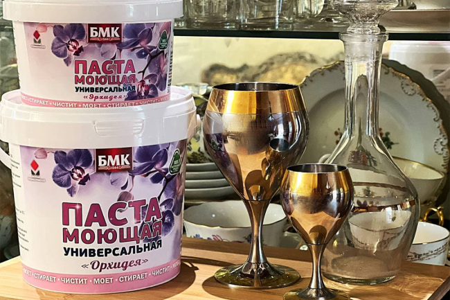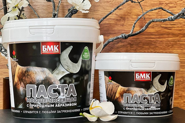Сначала БМК выпускало только жидкое мыло «Хозяюшка» двух видов: универсальное и с ароматом меда. Это натуральный продукт без фосфатов, консервантов и химических усилителей. Потом специалисты задумались над производством чистящих паст. Их начали изготавливать на основе уже имеющегося жидкого мыла.