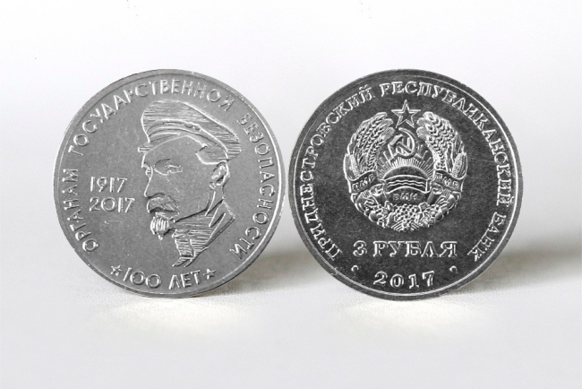 Тирасполь, 19 декабря. /Новости Приднестровья/. Приднестровский республиканский банк ввёл в обращение памятные монеты «100 лет органам Государственной безопасности» вне серии. Они изготовлены из недрагоценных металлов, достоинством 3 рубля.