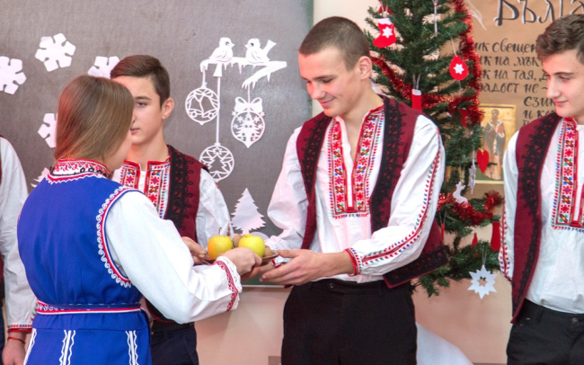 С девятилетием Центра его сотрудников поздравили учащиеся 2 и 10 классов Парканской средней школы №1 им. А. Стоева. Они представили болгарский новогодний обряд «Сурвакане» в национальных костюмах.