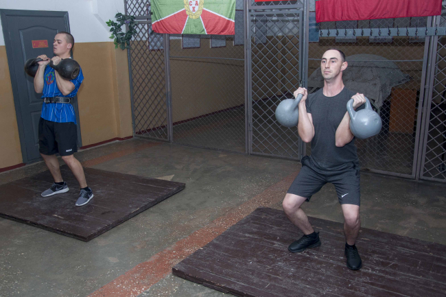Военнослужащих распределили на пять весовых категорий от 70 до 90 килограммов. На помостах атлеты выполняли два упражнения: толчок двух гирь и рывок. Вес гири составил 24 килограмма, сообщается на сайте Минобороны.