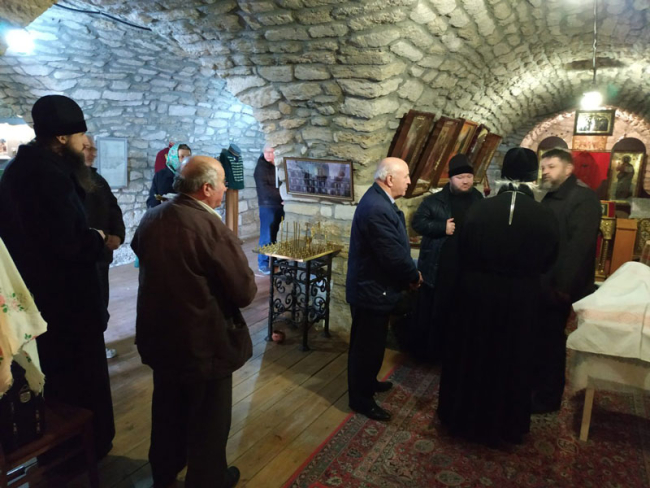 После настоятель прихода во имя новомучеников и исповедников Церкви Русской протоиерей Вадим Трощинский ознакомил гостей с пороховым погребом бастиона «Святой Владимир» Тираспольской крепости, часть которого ныне временно занимает храм.