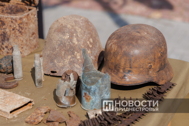 Советское, английское и немецкое оружие, фотографии, каски, портсигары, телефоны, самовары, фляги и не только – экспонаты Второй мировой войны сегодня представил на обозрение горожан и гостей столицы Поисковый отряд «Память и Слава». Его участник Юрий Соколов признался: какие-то экспонаты они находили сами в ходе раскопок, что-то отдавали в дар неравнодушные приднестровцы.