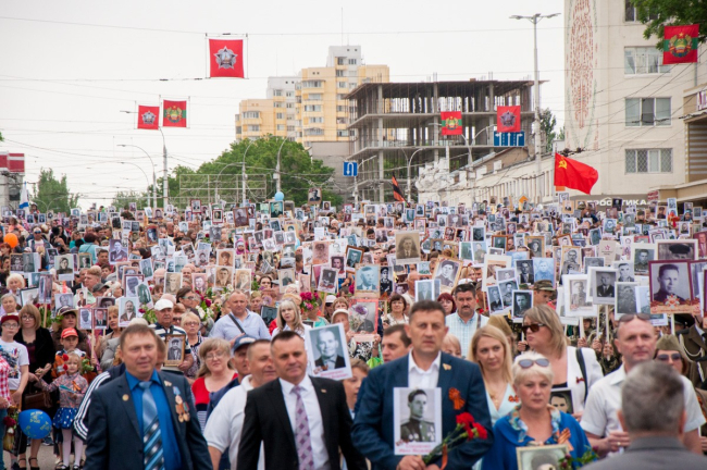 «Бессмертный полк - Приднестровье» начнет своё шествие в 11:30. Он будет двигаться от площади им. А.В. Суворова до военного городка ОГРВ. На его территории продемонстрируют реконструкцию военных событий, так же подготовлен праздничный концерт. Начало – в 12:00.