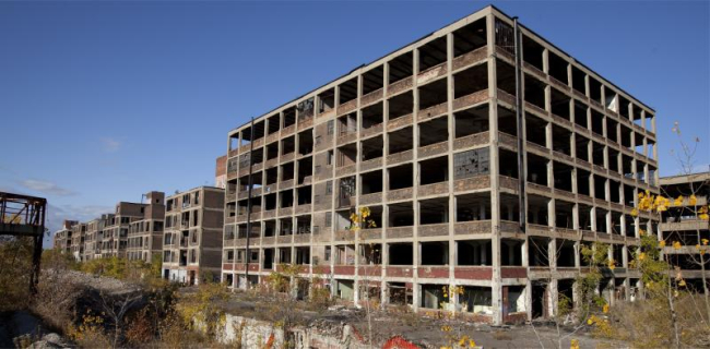 Пятьдесят лет назад население Детройта составляло около 2 миллионов жителей, а сейчас город насчитывает немногим более 700 тысяч человек. Количество рабочих мест на заводах упало с 296 до 27 тысяч. Районы города выглядят как антураж для съёмок фильма-катастрофы.
