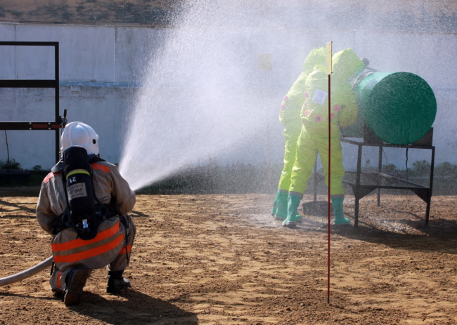 Спасатели преодолели полосу препятствий, ликвидировали пролив опасных химических веществ, извлекли пострадавших из колодца и макета повреждённого в ДТП автомобиля, разобрали завал при обрушении здания.