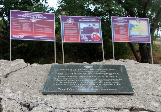 Тирасполь, 22 мая. /Новости Приднестровья/. Долговременную огневую точку (ДОТ) времён Великой Отечественной войны, отреставрированную недавно в селе Выхватинцы Рыбницкого района, включат в тематические экскурсии. Как отметили сегодня на совещании у Президента Вадима Красносельского, это сделано по просьбе местных жителей и подкреплено рекомендацией главы государства.