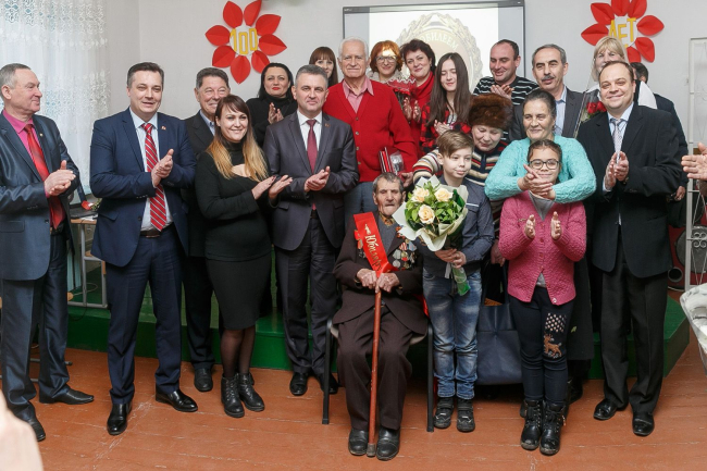 Дубоссарский ветеран Иван Колбас принимает поздравления по случаю 100-летия