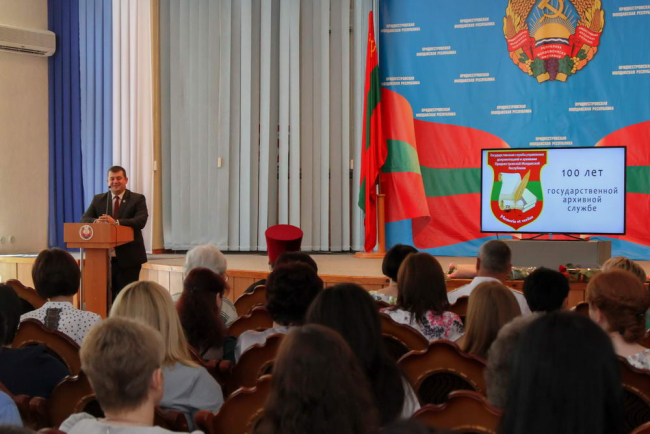 От имени Президента ПМР приветственный адрес зачитал Сергей Белоус. «В ПМР функционирует разветвленная сеть архивов. Знаю, в них трудятся настоящие профессионалы, которые изо дня в день бережно сохраняют национальную память», - говорится в документе.