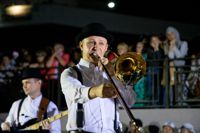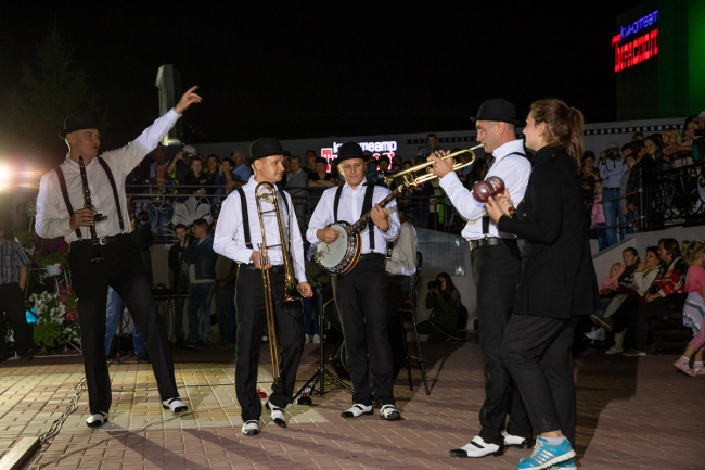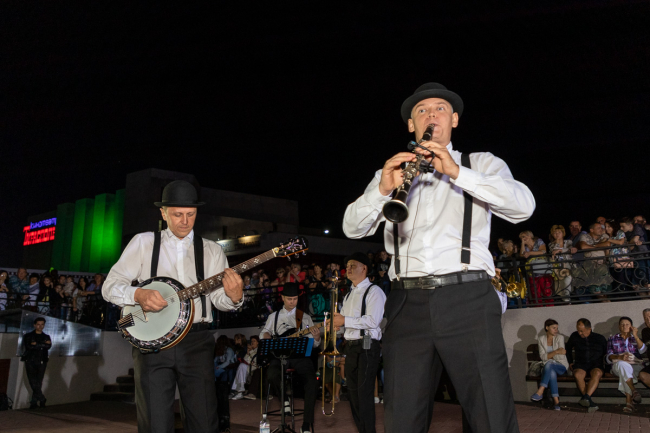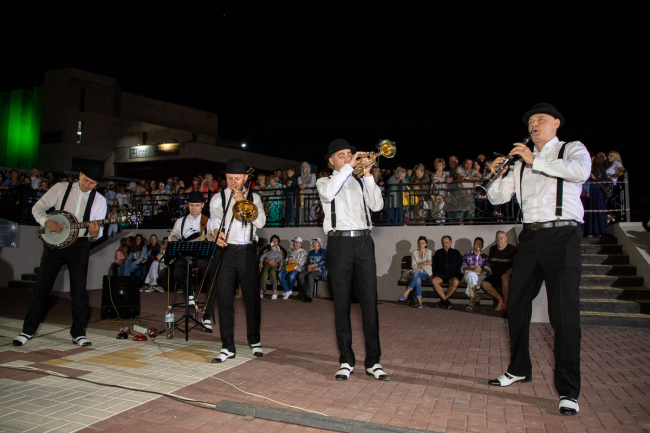 Артисты Дворца Республики исполнили традиционные джазовые композиции, блюз, диксиленд, обработки фольклорных, этнических тем в диксиленде. Также были попурри, с которыми ребята выступают на различных международных конкурсах и фестивалях.