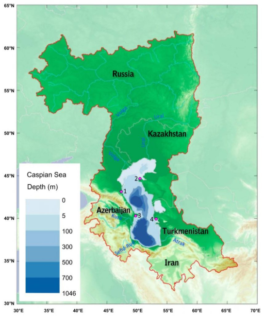 Каспийское море расположено между Европой и Азией, выход к нему имеют пять стран. Водоем занимает территорию площадью 371 тысячу квадратных километров. Кроме запасов нефти, газа и соли, водоем является нерестилищем для около 90% от общемировой численности осетровых.