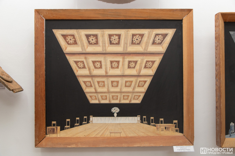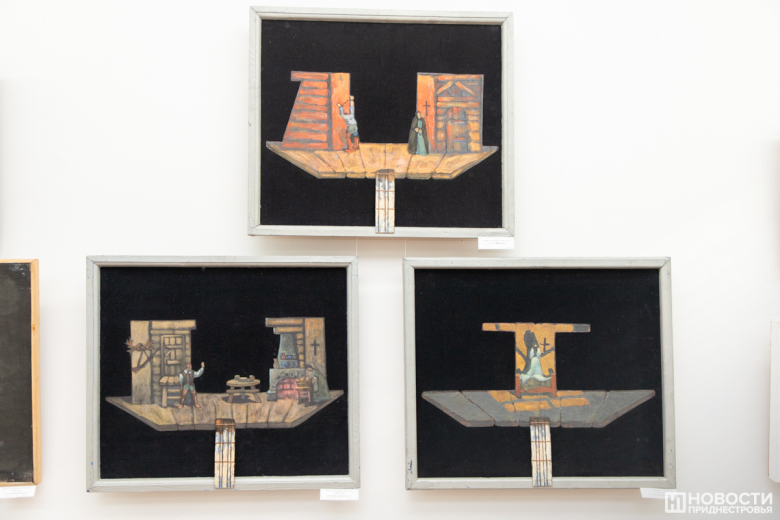 Основа экспозиции – сценография (театрально-декорационное искусство), в которой художник занимается оформлением спектакля и созданием его изобразительно-пластического образа, существующего в сценическом времени и пространстве. Работе художника в Приднестровском государственном театре драмы и комедии им. А.С. Аронецкой Леонид Пироженко отдал 25 лет.