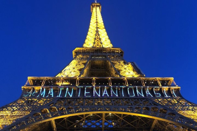 На ней появилась световая надпись «Maintenant On Agit» («Пришло время действовать»)
