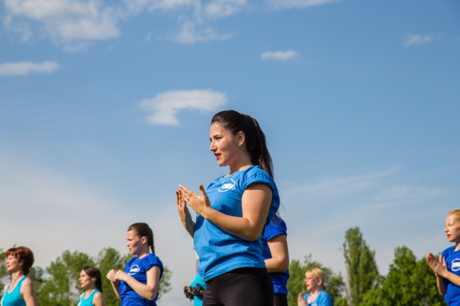 Ритмичные движения за своим инструктором сегодня повторяли около полусотни сотрудниц МВД. Для одних это стало первым подобным опытом, для других — уже почти привычным делом.