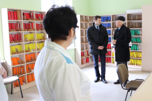 Глава Минздрава также оценил условия в амбулаторно-стационарном детском комплексе ЦРБ, где предполагается строительство детской площадки и обустройство пандуса.