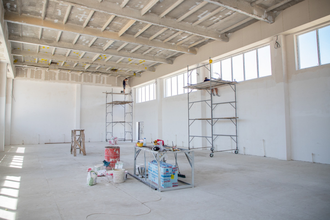 «Первым делом сделали кровлю над всеми корпусами, потом простенки. В прошлом году уже начали делать фасад главного здания, декоративную отделку стен, двери, окна, провели коммуникации. Сейчас остались только потолки, покраска стен и укладка полов. У нас полностью безбарьерная среда: двери без порогов, расширенные проёмы, два пандуса на входе - один для въезда, другой для выезда. Ещё один будет на выходе из большого спортзала. Все санузлы и душевые адаптированы под людей с инвалидностью», – рассказал директор строительной компании «Союзинвест» Евгений Друзенко.