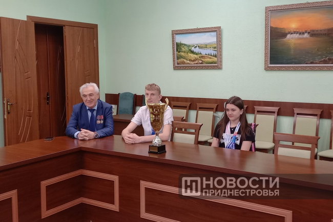 Дубоссары, 14 июня. /Новости Приднестровья/. В дубоссарской госадминистрации сегодня состоялась встреча с теннисистами, которые одержали победу на Всемирных играх юных соотечественников в Москве. Глава госадминистрации Руслан Чабан вручил воспитанникам и руководителю Дубоссарской школы настольного тенниса поздравительные адреса и подарки.