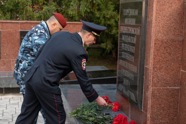 Глава государства прибыл на территорию МВД, где по торжественному поводу собрался личный состав. Праздничные мероприятия предварила традиционная церемония возложения цветов к памятнику сотрудникам органов внутренних дел Приднестровья, погибшим при исполнении служебного долга. За приднестровскую историю на службе отдали жизни больше четырех десятков милиционеров. Еще 16 правоохранителей погибли, защищая свободу и независимость приднестровского государства. Их память почтили Минутой молчания в ходе торжественного собрания, которое провели в актовом зале Министерства внутренних дел, говорится в сообщении президентской пресс-службы.