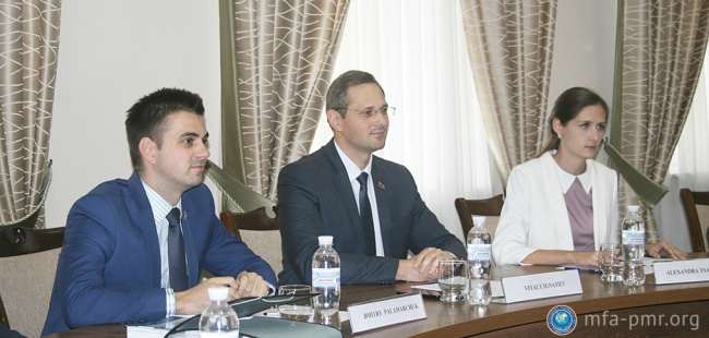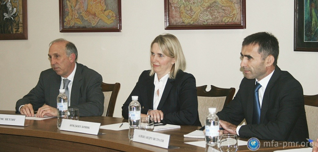 Во внешнеполитическом ведомстве состоялась встреча и.о. министра иностранных дел ПМР Виталия Игнатьева с делегацией американских дипломатов в составе заместителя помощника Государственного секретаря США Бриджит Бринк и Чрезвычайного и Полномочного Посла США в РМ Джеймса Петтита. От приднестровской стороны во встрече также принял участие заместитель министра иностранных дел ПМР Дмитрий Паламарчук.