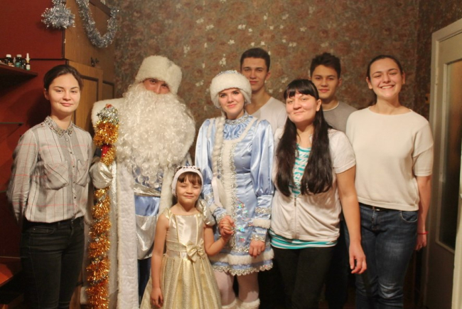 Команда волонтёров центра детского и юношеского творчества во главе с Дедом Морозом и Снегурочкой пришли к пятилетней Арине домой. Они подарили ей альбом, карандаши, а также мягкие игрушки и книжки.