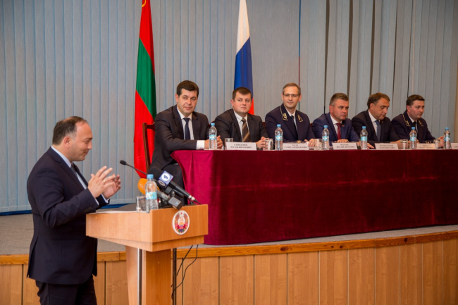 От имени посла Российской Федерации в РМ Фарита Мухаметшина коллектив Министерства иностранных дел Приднестровья поздравил старший советник посольства Петр Уржумов.