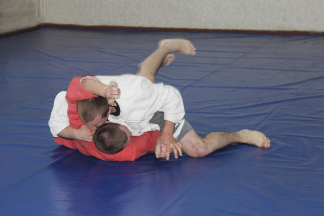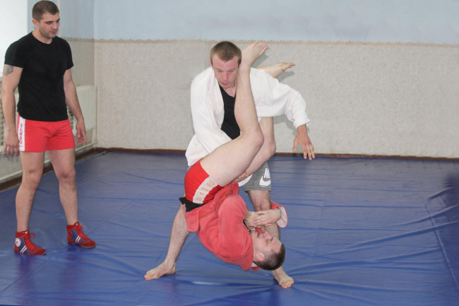 Спортсмены отрабатывают болевые, удушающие и бросковые приёмы, оттачивают технику в партере