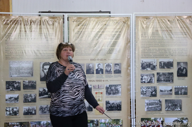 Посетителей ознакомили с документами и фотографиями, в том числе времён Великой Отечественной войны, героев-уроженцев района, фронтовиков, которые восстанавливали народное хозяйство. Отдельный баннер посвящён выдающимся личностям района. Не остались без внимания достижения и значимые события Слободзейского района в наши дни.